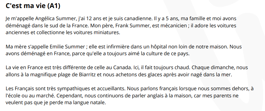 text C´est ma vie.