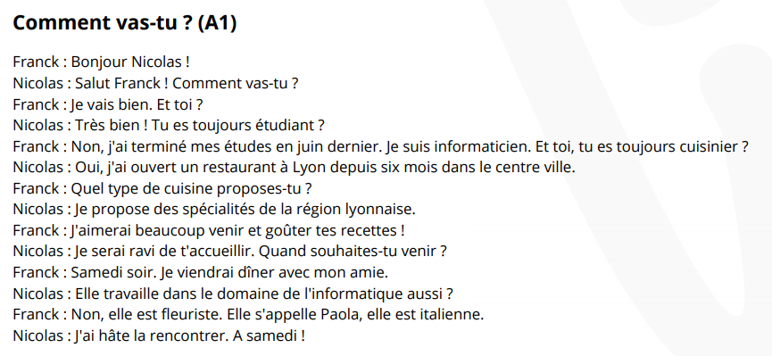TEXT „Comment vas-tu?