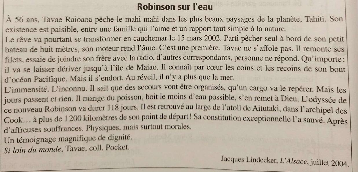 Texte - Robinson sur l´eau