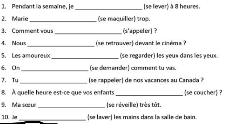 verbes pronominaux – dix phrases